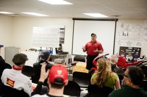 Greenwood begins by covering racing fundamentals and safety with wet track conditions. He is clear, thorough and confidence inspiring as he discusses the rules and techniques for staying safe in the rain. The amount of information involved in racing, as I learn throughout the day, is vast and more than a little intimidating, but all the instructors make the ominous track conditions and volume of information easy to manage. Soon after the class starts, the tension dissipates from the classroom like the rain clouds as the blue sky tries desperately to break through.